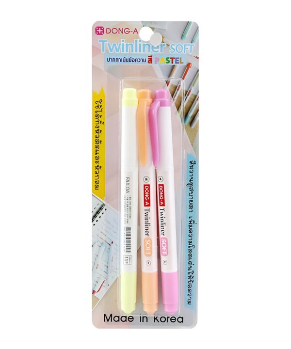 ดองอา ปากกา ไฮไลท์ เน้นข้อความ 2 หัว สีพาสเทล แพ็ค 3