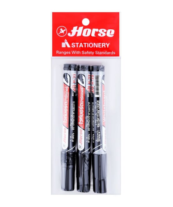 ตราม้า ปากกาไวท์บอร์ด สีดำ รุ่น H-22 แพ็ค 3 แท่ง