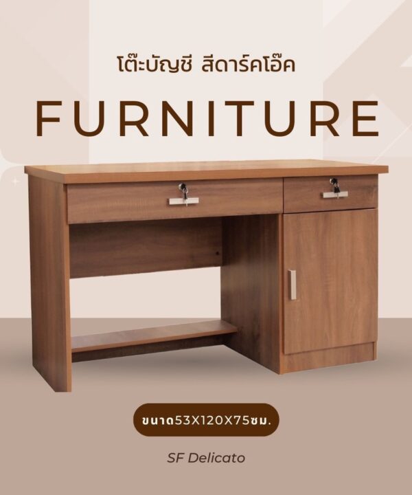 DELICATO โต๊ะบัญชีA-02 ขนาด53x120x75ซม.สีดาร์คโอ๊ค