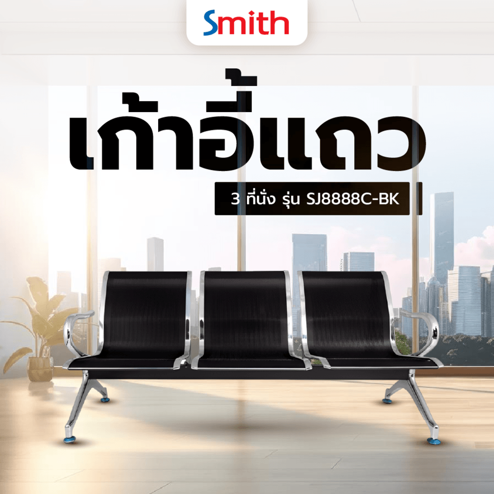 SMITH เก้าอี้แถว 3 ที่นั่ง รุ่น SJ8888C-BK ขนาด 68×175×77ซม. สีดำ (1/3)