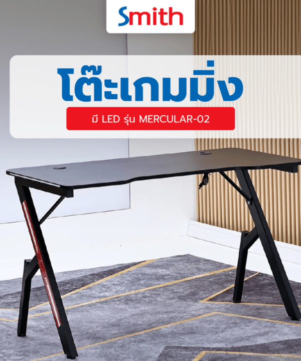 SMITH โต๊ะเกมมิ่ง LED รุ่น MERCULAR-02 ขนาด 60x120x73 ซม. สีดำ