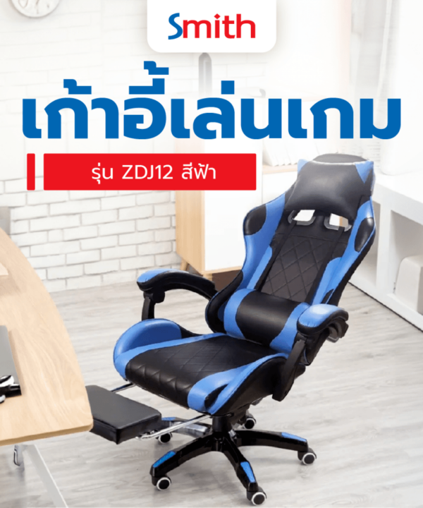 SMITH เก้าอี้เล่นเกม มีที่วางขา รุ่น ZDJ12 ขนาด 65x70x132 ซม. สีฟ้า