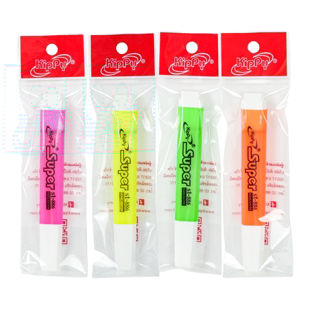 คิปปี้ ปากกาเน้นข้อความ รุ่น 886 สีสวยสะดุดตา มองเห็นได้ชัดเจน เส้นคมชัด ใช้งานได้ทั้งกระดาษทั่วไป กระดาษถ่ายเอกสาร และกระดาษแฟกซ์ เหมาะสำหรับการใช้เน้นข้อความ หรือ เตือนความจำต่างๆ