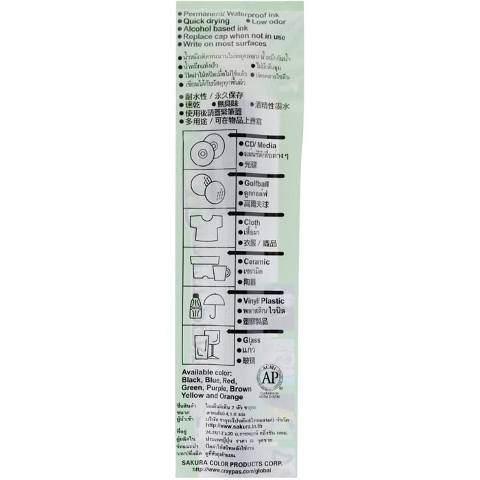 ซากุระ ไอเด็นติเพ็น 2 หัว รุ่น XYKT-P-49 ปากกามาร์คเกอร์ 2 หัวชนิดพิเศษ หมึกสีดำ ที่สามารถเขียนได้ดีบนวัสดุพิเศษต่างๆ ทั้งผ้า พลาสติก เหล็ก เซรามิค ไม้ หนัง หรือแก้ว เป็นต้น ด้วยลายเส้นที่เข้ม คมชัด ไม่ซีดจาง อีกทั้งยังมีคุณสมบัติกันน้ำ และไม่มีสารที่เป็นอันตรายต่อสุขภาพ หรือกลิ่นฉุนให้รำคาญใจ