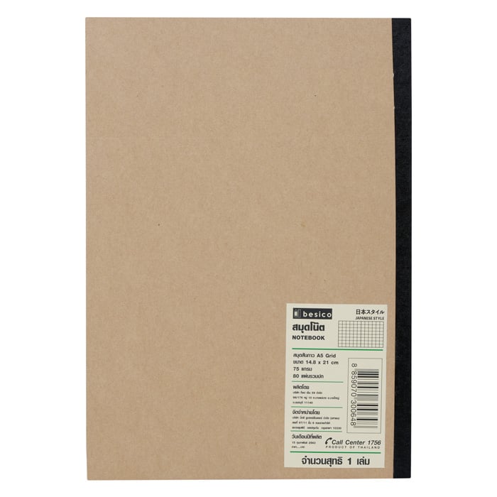 – สมุดปกน้ำตาลสันกาวขนาด 14.8 x 21 ซม.