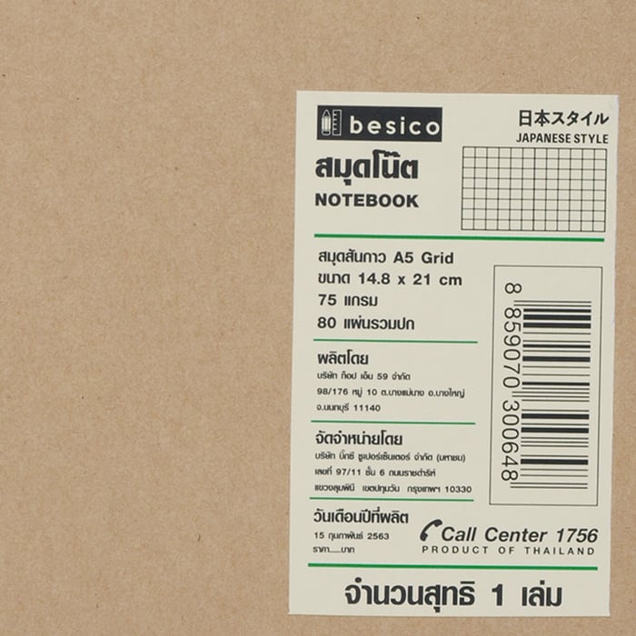 เบสิโค สมุดสันกาว A5 ลายตาราง 75 แกรม 1 เล่ม