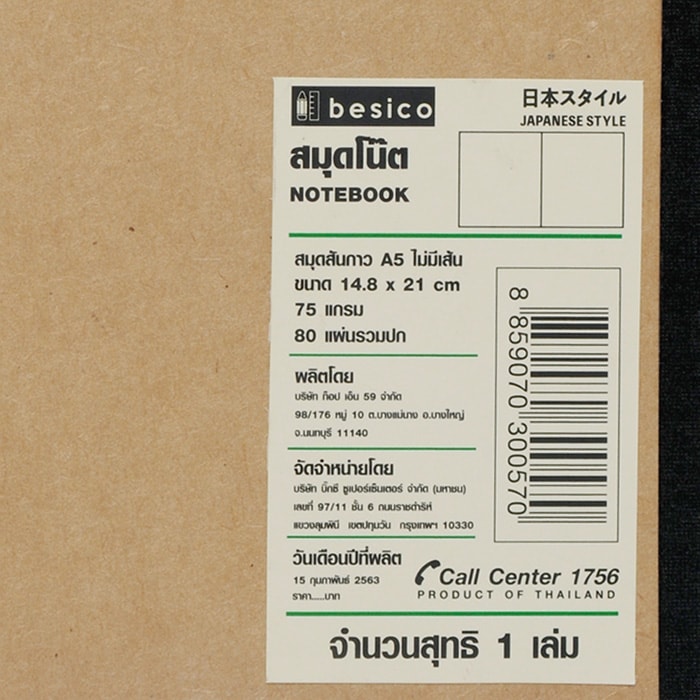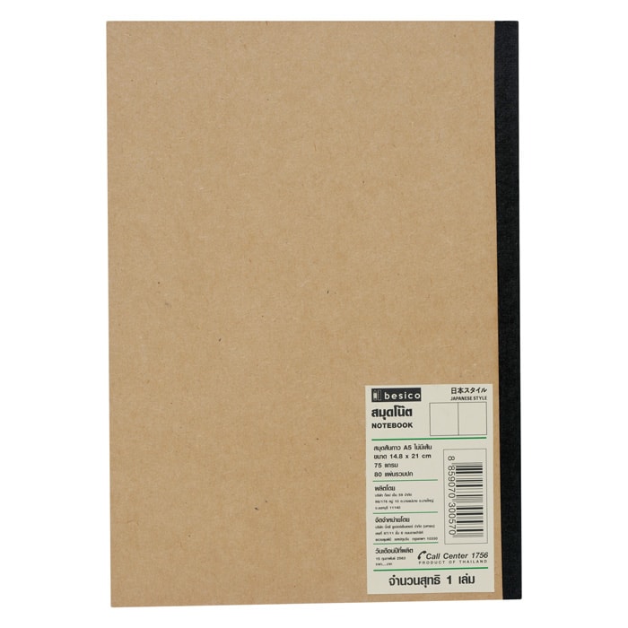 – สมุดปกน้ำตาลสันกาวขนาด 14.8 x 21 ซม.