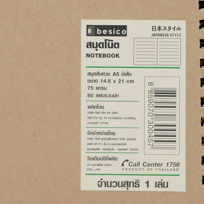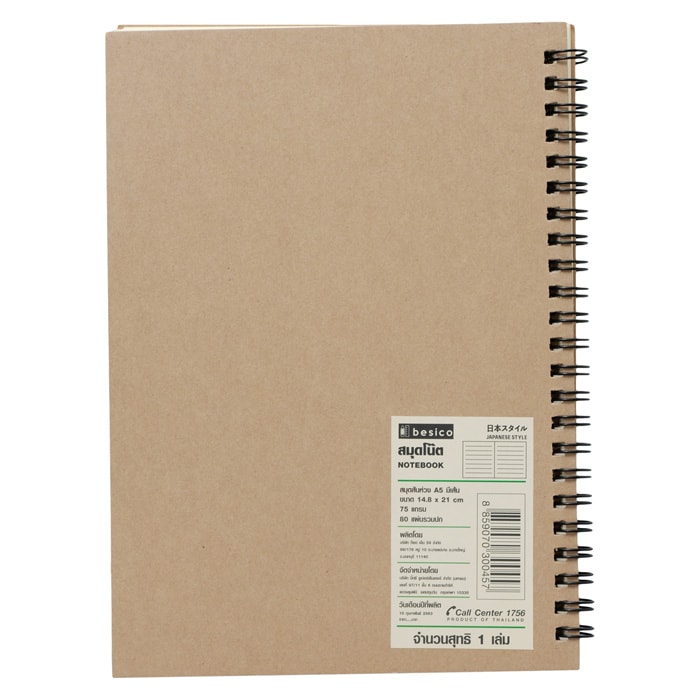– สมุดปกน้ำตาลสันห่วงขนาด 14.8 x 21 ซม.