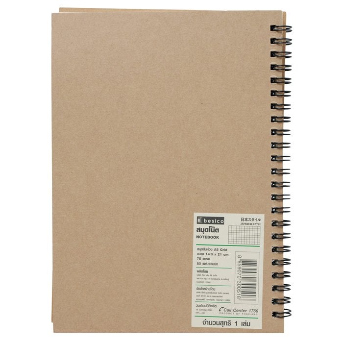 – สมุดปกน้ำตาลสันห่วงขนาด 14.8 x 21 ซม.