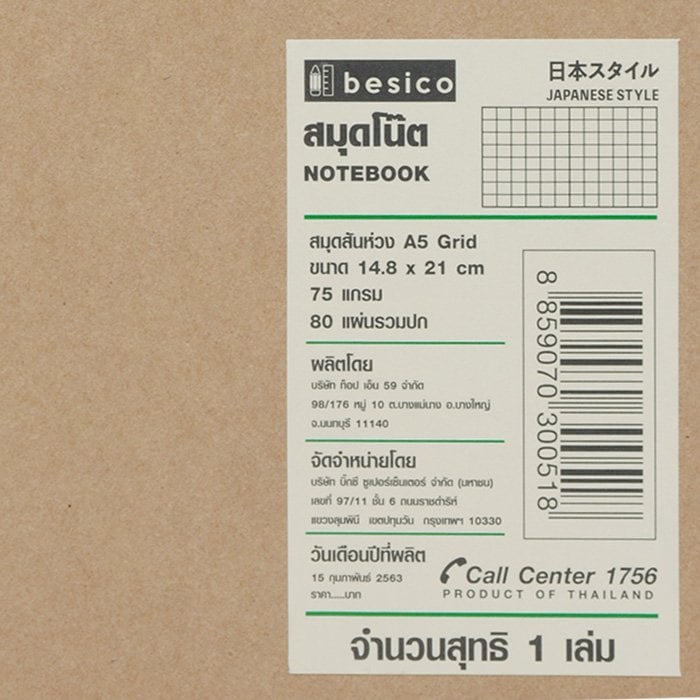เบสิโค สมุดสันห่วง A5 ลายตาราง 75 แกรม 1 เล่ม
