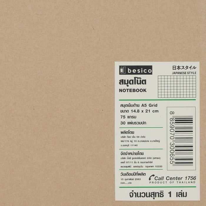 เบสิโค สมุดเย็บด้าย A5 ลายตาราง 75 แกรม 1 เล่ม