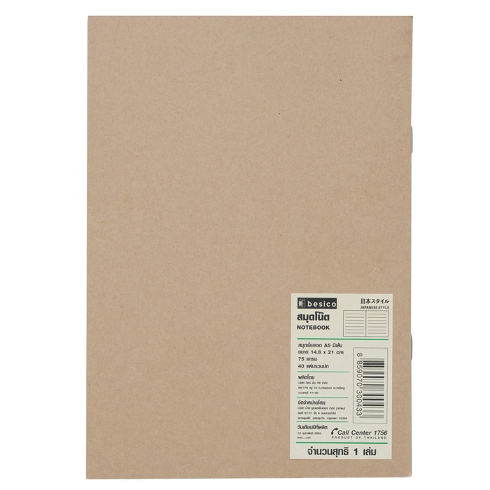 – สมุดปกน้ำตาลเย็บลวดขนาด 14.8 x 21 ซม.