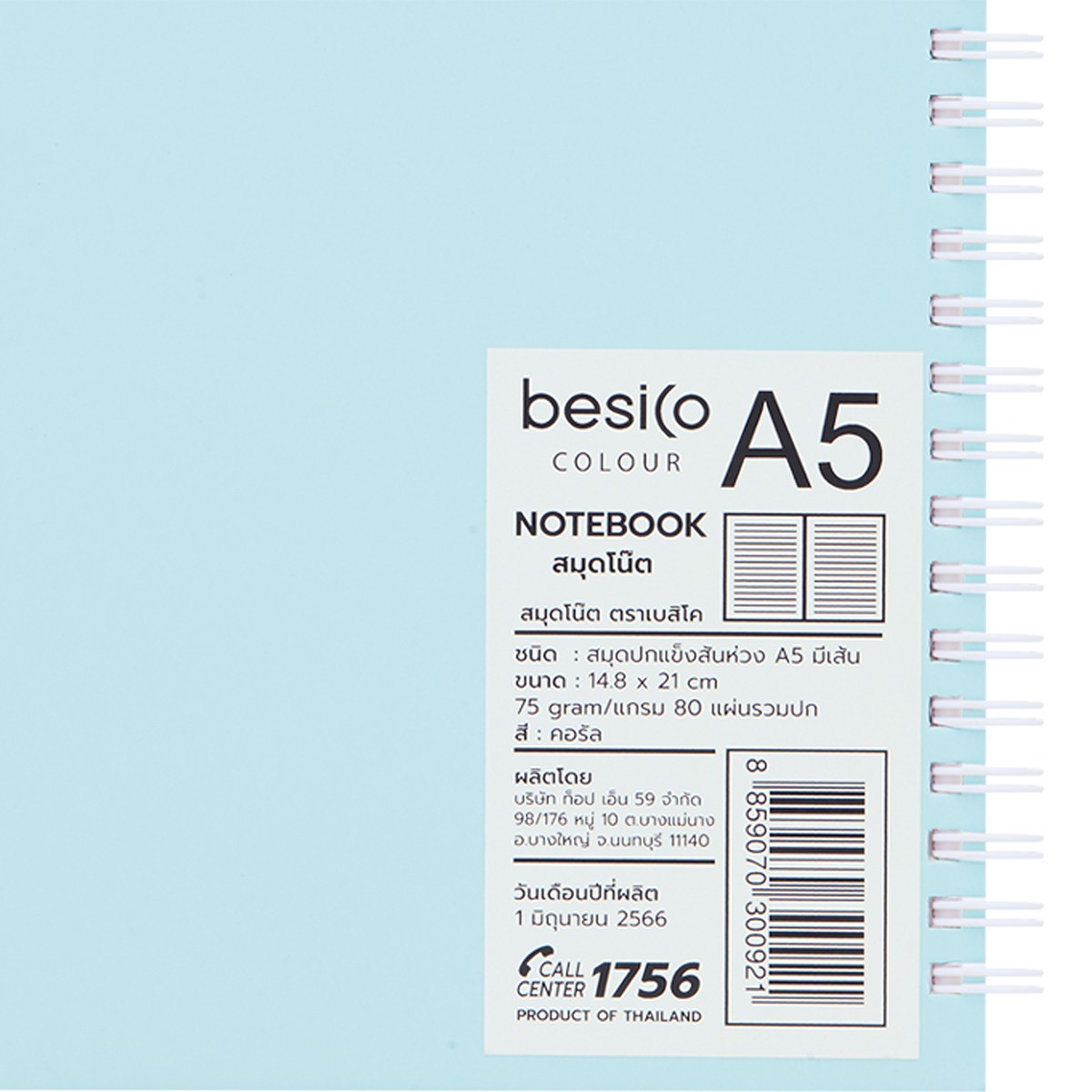 – เบสิโค สมุดโน้ตปกแข็งสันห่วง มีเส้น ขนาด A5
