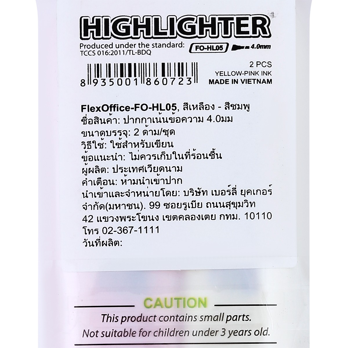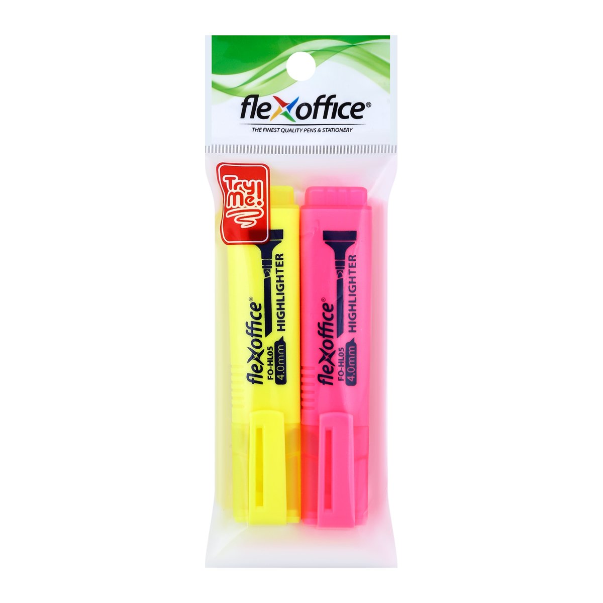 เฟล็กซ์ ออฟฟิศ ปากกาเน้นข้อความ รุ่น FO-HL05 ขนาด 4.0 มม. สีเหลืองและชมพู แพ็ค 2