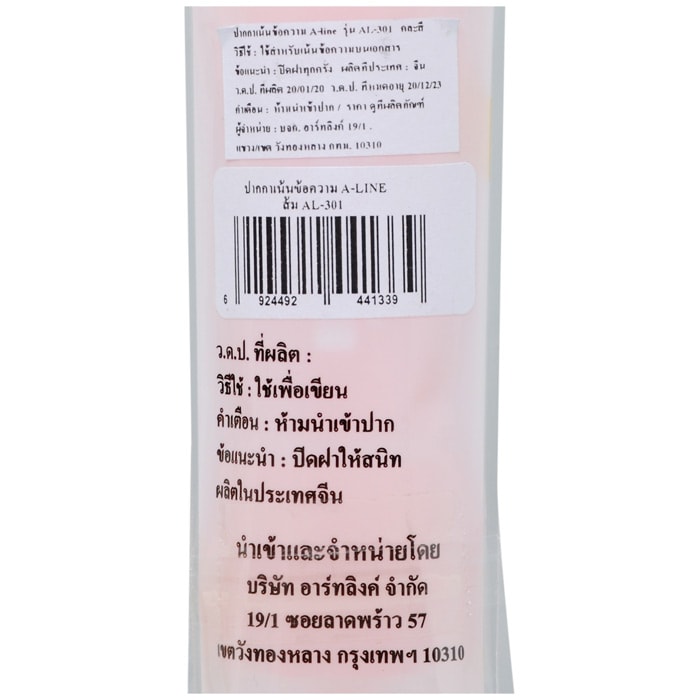 เอ-ไลน์ ปากกาเน้นข้อความ รุ่น AL-301 สีส้ม ปากกาเน้นข้อความคุณภาพดีเกินราคา ที่มาพร้อมหมึกสูตรน้ำ สีสดใส กลิ่นไม่ฉุน ติดทนนานไม่ซีดจางไว สามารถเน้นได้ชัดทุกข้อความสำคัญ ช่วยให้การอ่านง่ายยิ่งขึ้น ใช้งานได้กับกระดาษทุกรูปแบบ อีกทั้งไม่เกิดรอยดำเมื่อถ่ายเอกสารหรือส่งแฟกซ์
