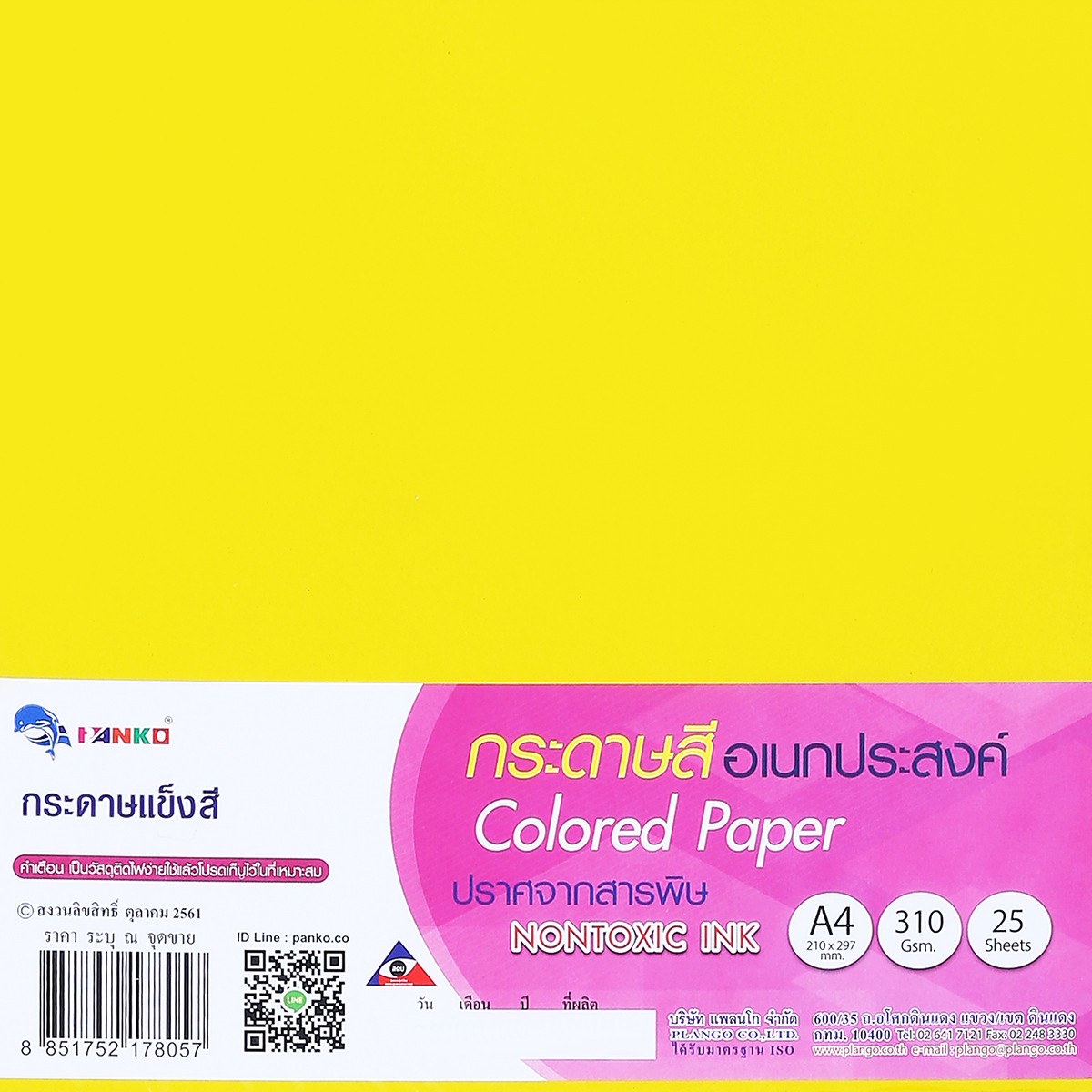 แพลนโก กระดาษสีอเนกประสงค์ 310 แกรม ขนาด A4 แพ็ค 25 แผ่น