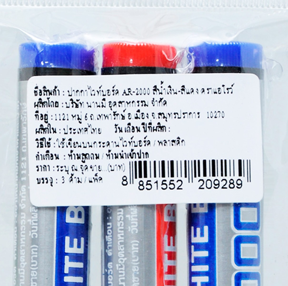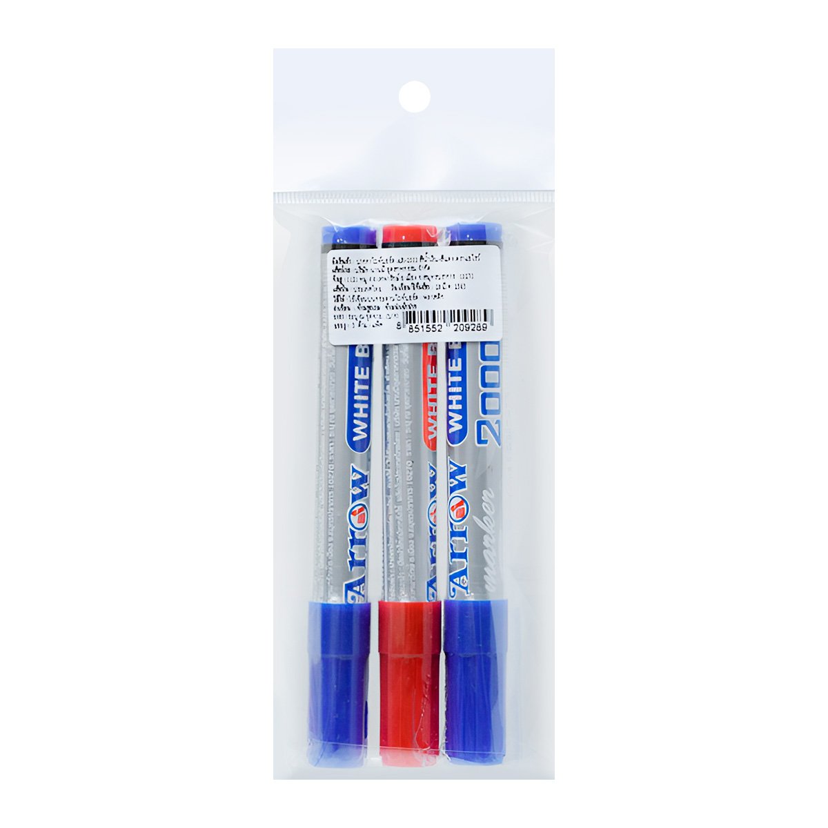 แอร์โรว์ ปากกาไวท์บอร์ด รุ่น AR-2000 สีน้ำเงิน-แดง ปากกาไวท์บอร์ด ชนิดหัวแหลม เขียนลื่น เส้นคมชัด ลบออกได้ง่าย ไม่มีกลิ่นฉุนและไม่เป็นอันตรายต่อสุขภาพ สามารถเขียนได้บนกระดานไวท์บอร์ด แก้ว และพื้นผิวที่ไม่มีรูพรุน