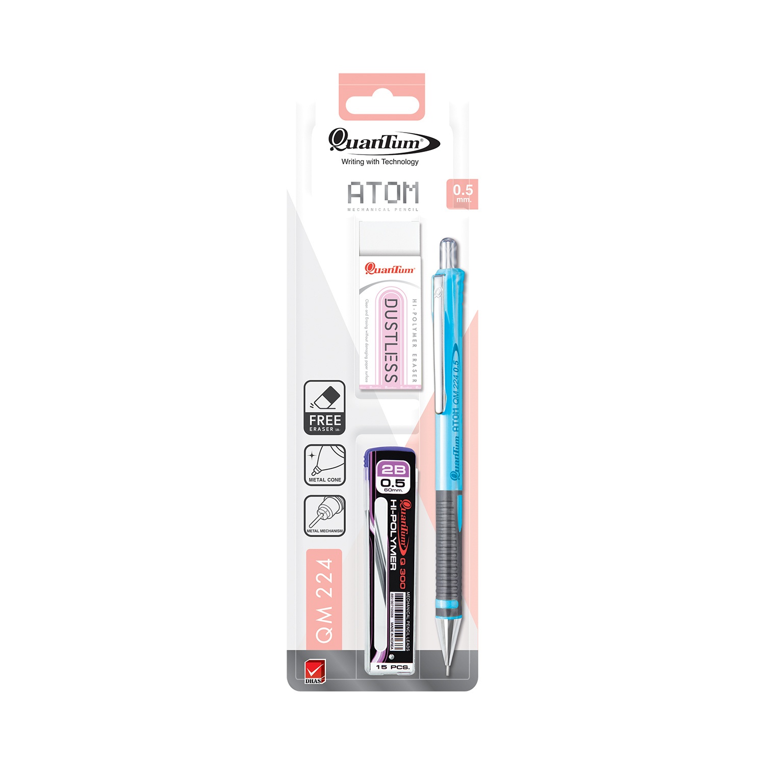 Quantum ชุดดินสอกด 0.5 มม.+ไส้+ยางลบ รุ่น อะตอม 224 (1×12)