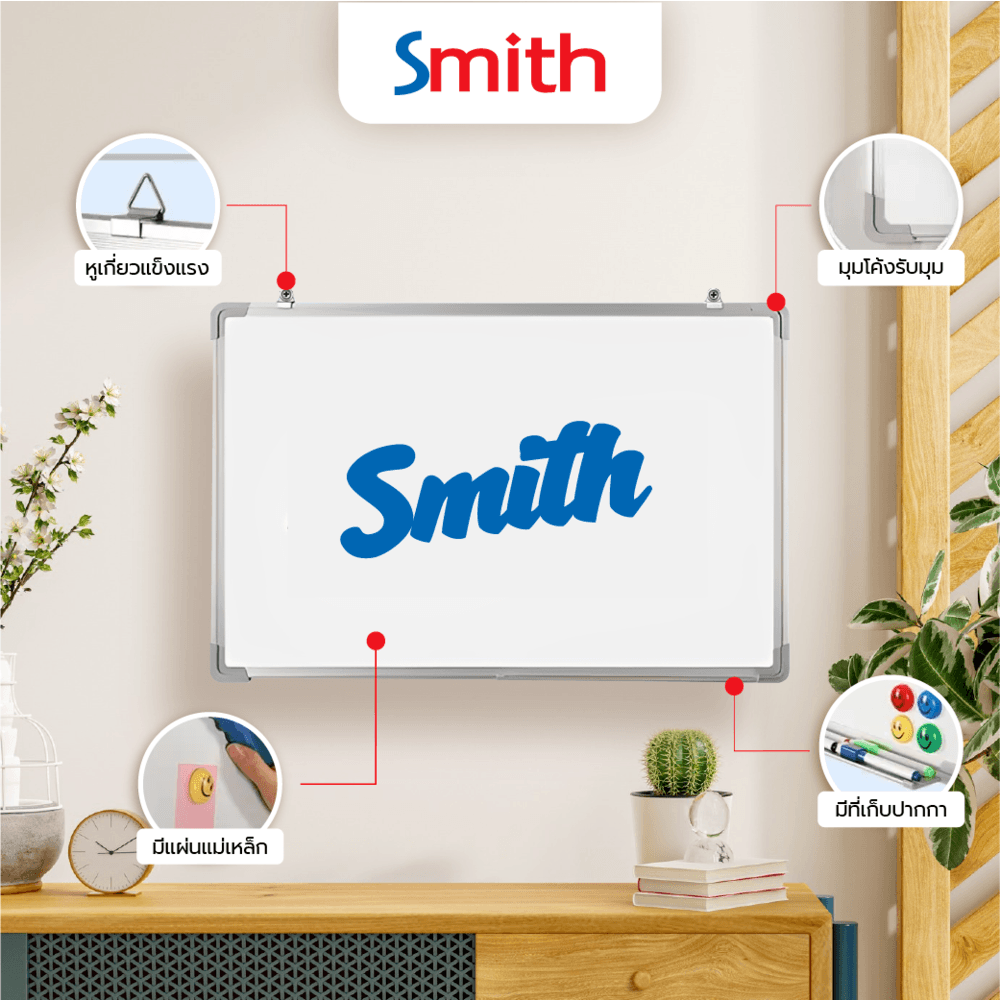 เพิ่มความคิดสร้างสรรค์และประสิทธิภาพในการทำงานของคุณด้วย SMITH ชุดกระดานไวท์บอร์ดแม่เหล็กแขวนผนัง GX4303 ขนาด 60x90x3ซม. สีขาว ใช้งานง่าย สะดวกในการติดตั้ง ใช้งานได้ทั้งในบ้านและสำนักงาน!