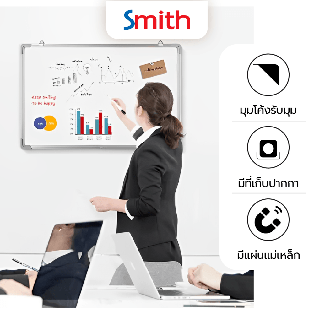เพิ่มความคิดสร้างสรรค์ให้กับการทำงานของคุณด้วย SMITH ชุดกระดานไวท์บอร์ดแม่เหล็กแขวนผนัง GX-95952 ขนาด 120x180x3ซม. สีขาว ดีไซน์สวย ขนาดใหญ่ เหมาะสำหรับการประชุมหรือการนำเสนอ สั่งซื้อเลย!