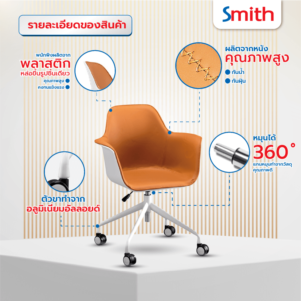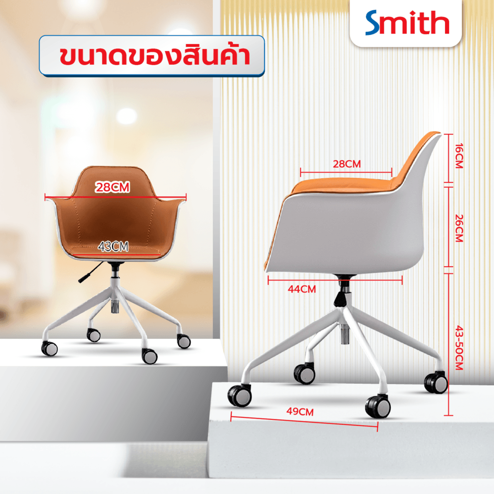ค้นพบความสบายในการทำงานกับเก้าอี้สำนักงาน SMITH รุ่น Zayna-01 ขนาดพอเหมาะ สีขาว-ส้ม สวยงาม เหมาะสำหรับทุกพื้นที่!