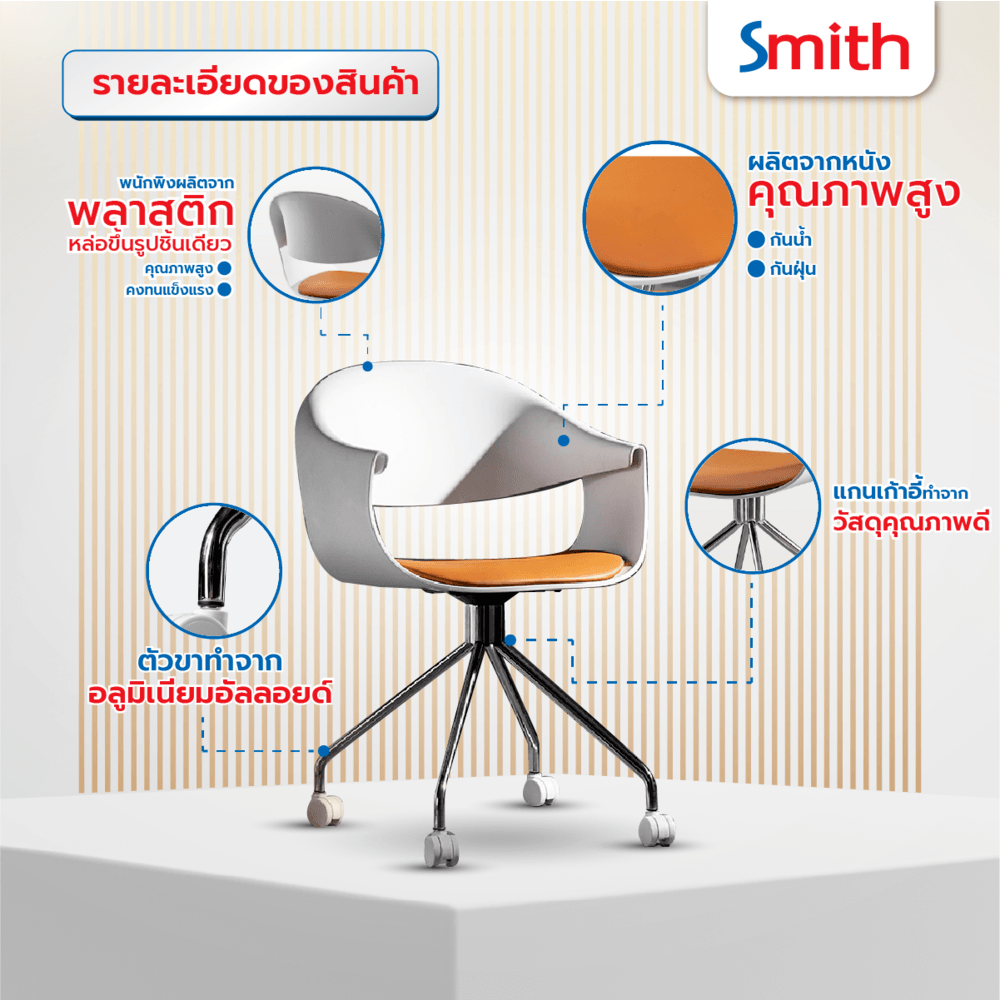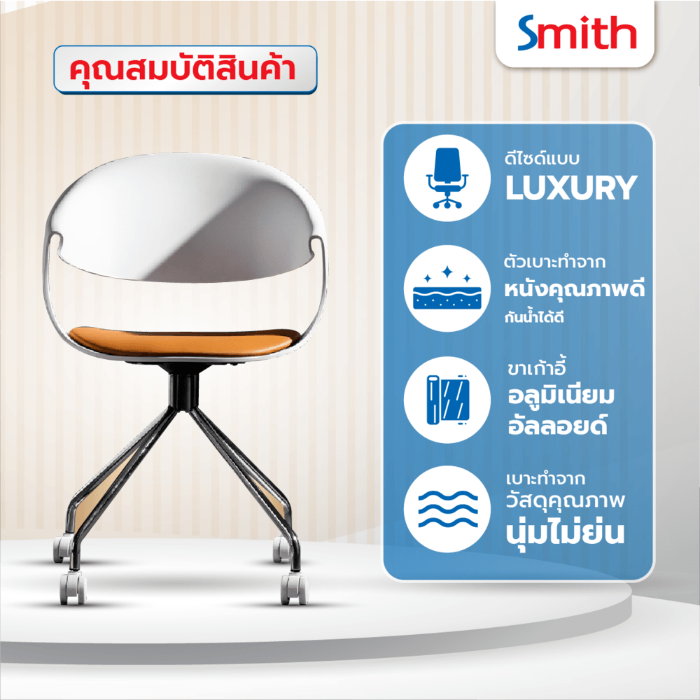 สัมผัสความสะดวกสบายด้วยเก้าอี้สำนักงาน SMITH รุ่น Zayna-02 ดีไซน์ทันสมัย ขนาดกะทัดรัด เหมาะสำหรับทุกการใช้งาน