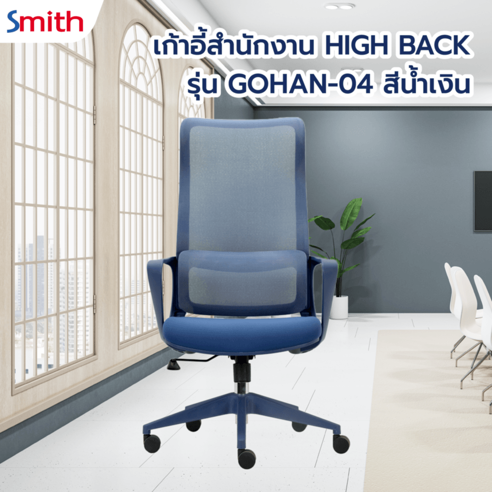 SMITH เก้าอี้สำนักงาน HIGH BACK รุ่น GOHAN -04 พร้อมดีไซน์ทันสมัย ช่วยให้คุณนั่งสบายทุกวัน ทำงานได้อย่างมีสมาธิ สีน้ำเงินโดดเด่น!