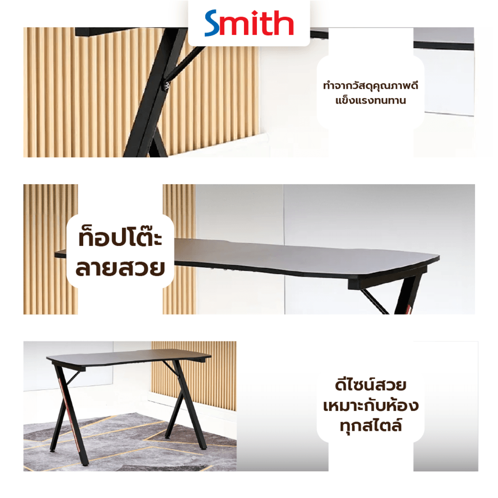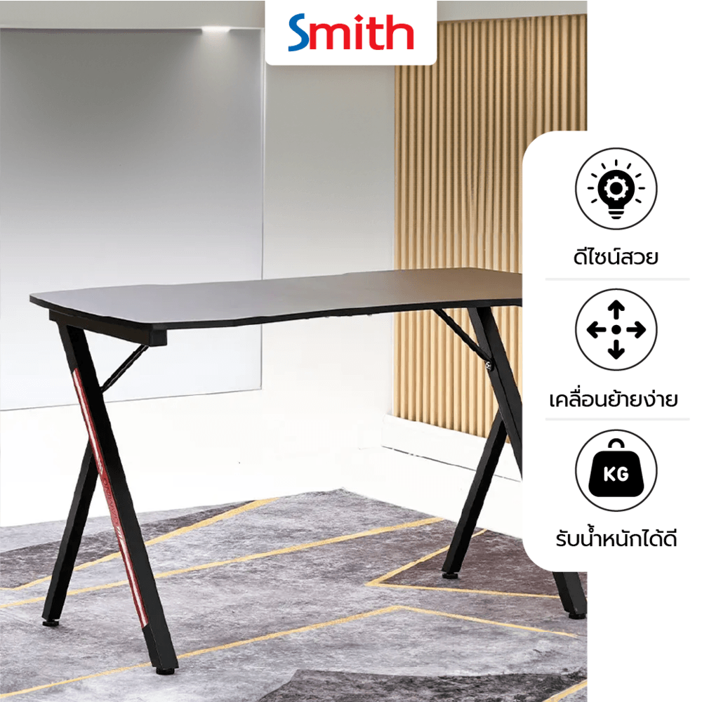 ยกระดับประสบการณ์การเล่นเกมของคุณด้วยโต๊ะเกมมิ่ง SMITH รุ่น MERCULAR-01 ขนาดกะทัดรัด แข็งแรง ทนทาน สีดำสุดเท่ห์! ออกแบบมาเพื่อความสะดวกสบายและประสิทธิภาพในการเล่นเกม