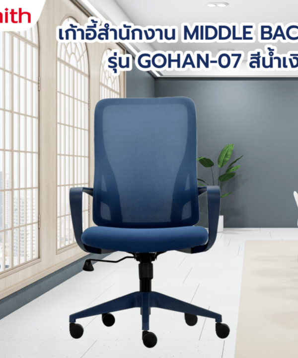 SMITH เก้าอี้สำนักงาน MIDDLE BACK รุ่น GOHAN -07 ขนาด 60x61.5x101-110.5 ซม. สีน้ำเงิน