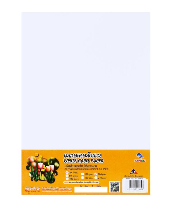 แพลนโก กระดาษการ์ดขาว 180 แกรม แพ็ค 20 แผ่น