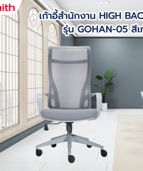 “SMITH เก้าอี้สำนักงาน HIGH BACK รุ่น GOHAN -05 ขนาด 61x64x115-124 ซม. สีเทา” has been added to your cart.